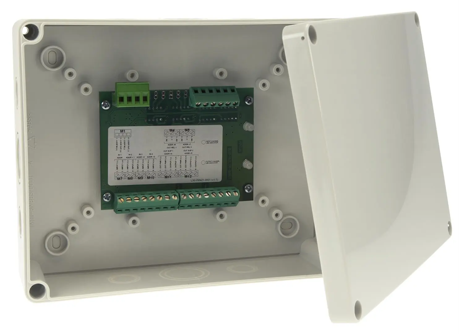 VMIC422 je vícekanálový modul se 4 vstupními 4 výstupními obvody, určený pro monitorování a ovládání pomocných zařízení v systémech elektrické požární signalizace (EPS).