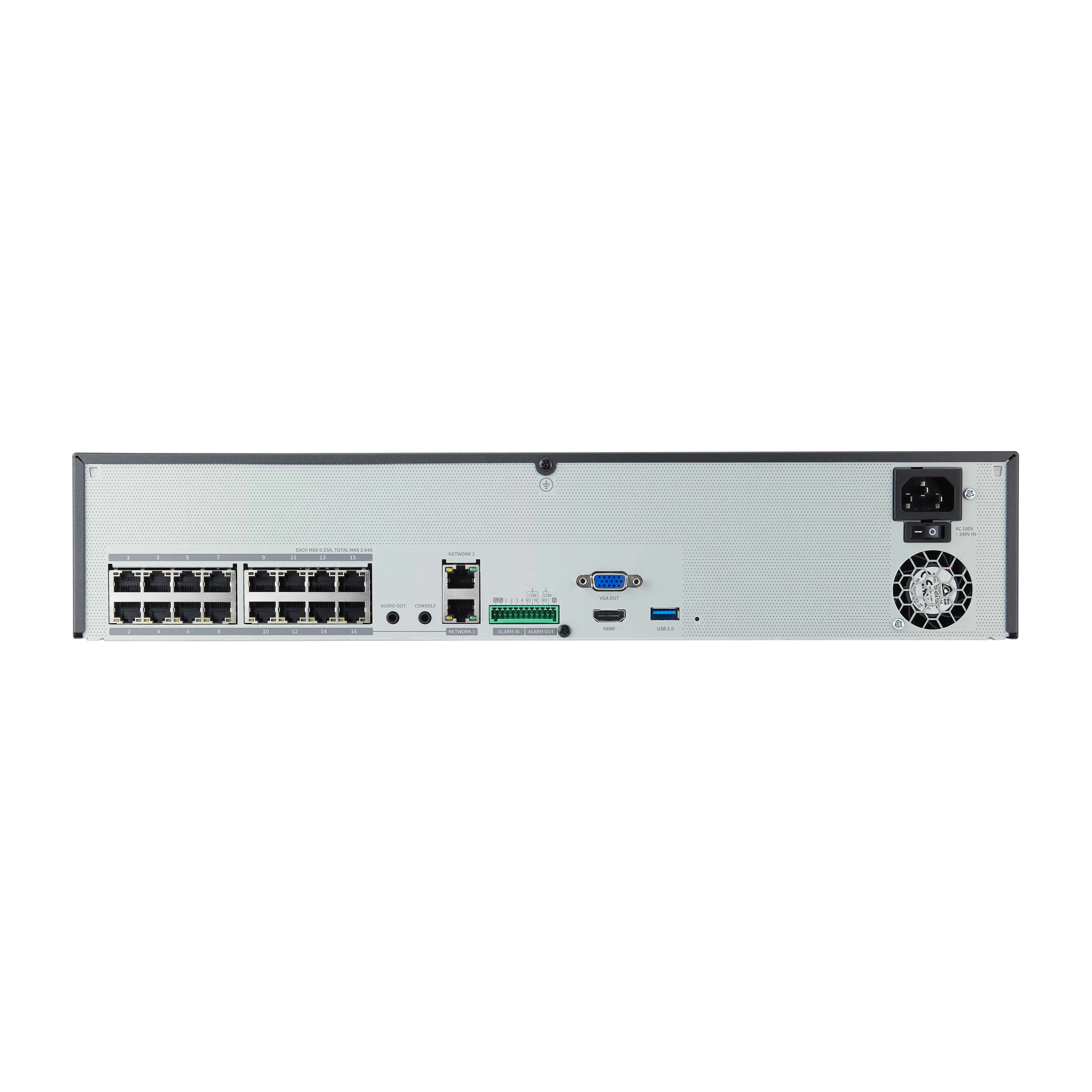 Výkonný síťový NVR záznam, 16 kamer (bez HDD)