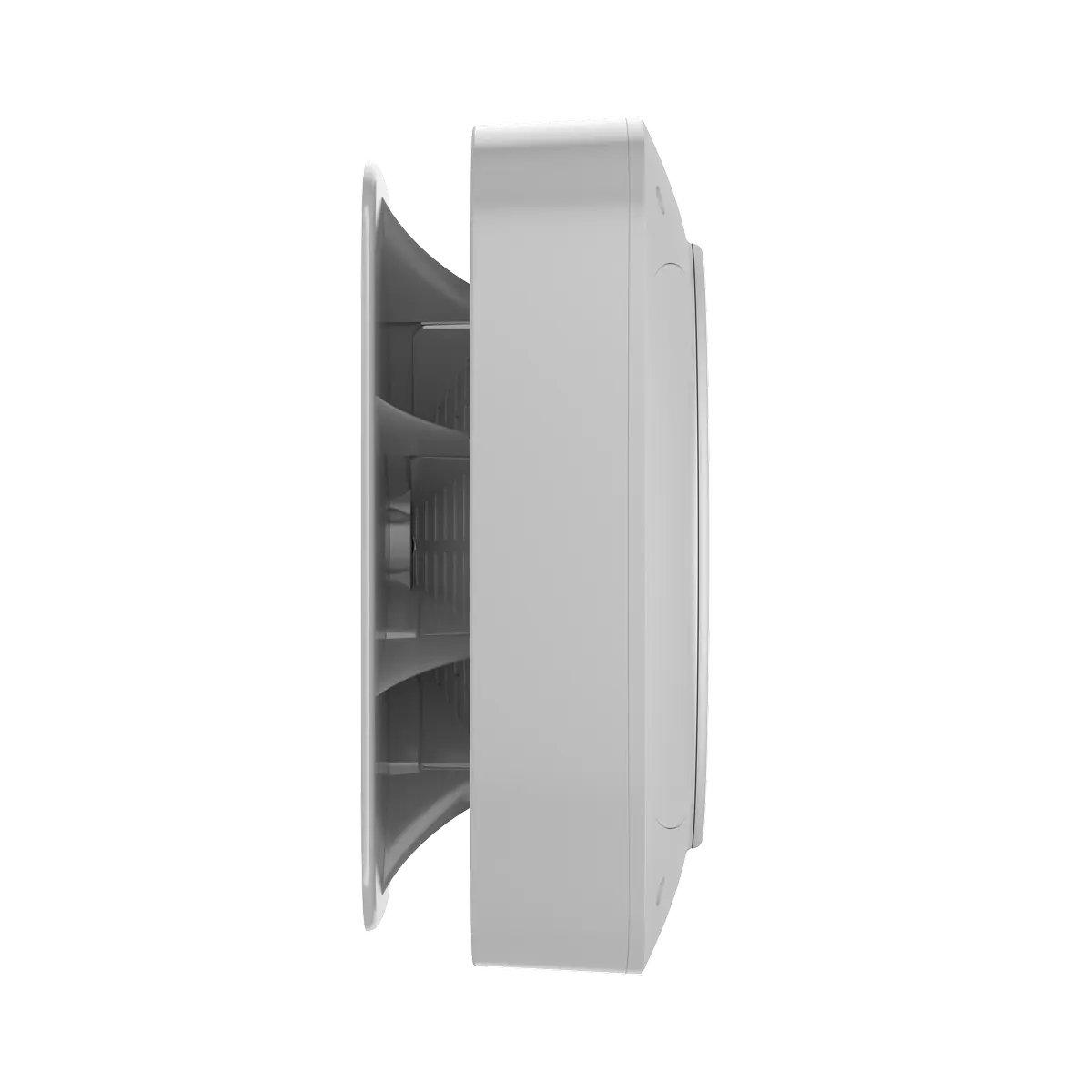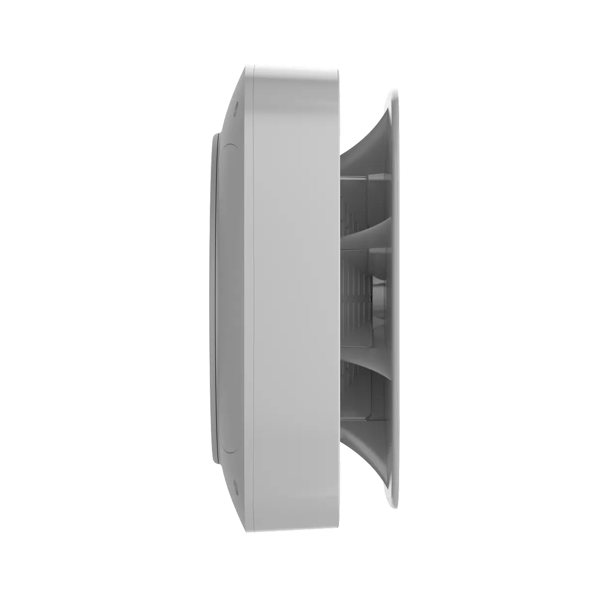 Duálně-spektrální optický senzor v kombinaci s algoritmem HazeFlow 2 rozpoznává mikročástice kouře v reálném čase a eliminuje falešné poplachy způsobené párou nebo prachem. Po detekci kouře spustí integrovanou sirénu (95 dB) a blikající červenou LED. Poplach je současně odeslán do ústředny Ajax EN54 Hub a v případě nastavení lze aktivovat synchronizované sirény ve všech místnostech.