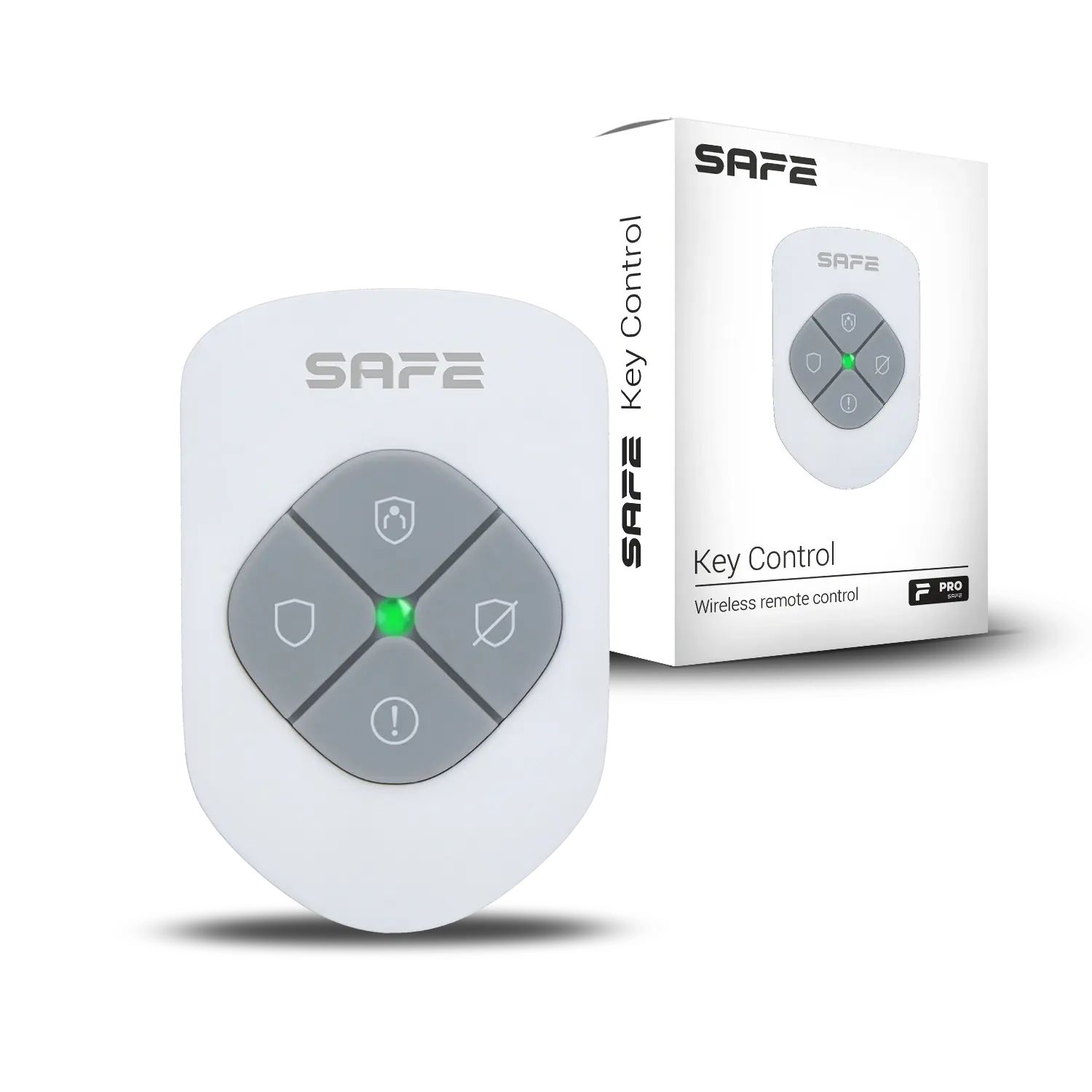 Key Control je praktický bezdrátový dálkový ovladač, který si snadno připnete na klíče, vložíte do kapsy a máte jej tak vždy po ruce. Toto kompaktní a univerzální zařízení je vybaveno třemi tlačítky pro jednoduché ovládání klíčových funkcí zabezpečovacího systému SAFE – částečné aktivace, plné aktivace nebo deaktivace. Navíc obsahuje jedno volně programovatelné tlačítko, které lze využít například k vyhlášení SOS tísňového poplachu, spuštění předem nastavené operace nebo aktivaci automatizačního scénáře.