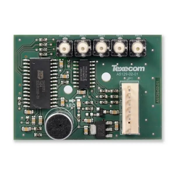 přídavný hlasový modul pro ústředny Premier Elite (verze V3.00 a vyšší), čtyři hlasové zprávy (celkem 10s), zprávu lze aktivovat jakýmkoliv výstupem
