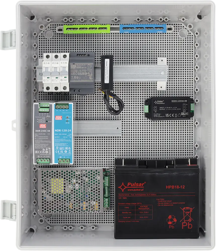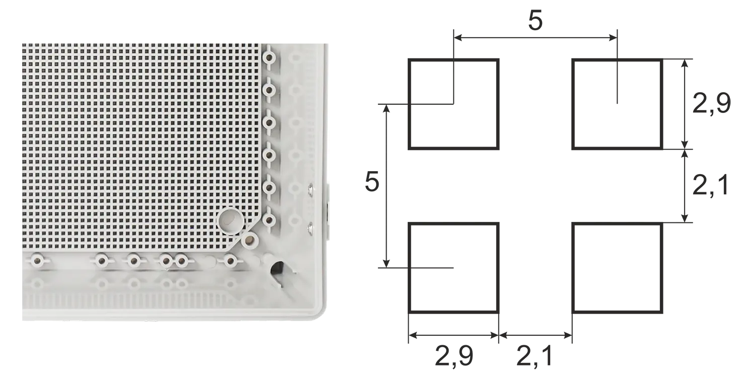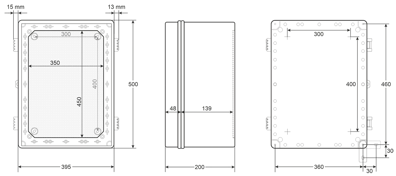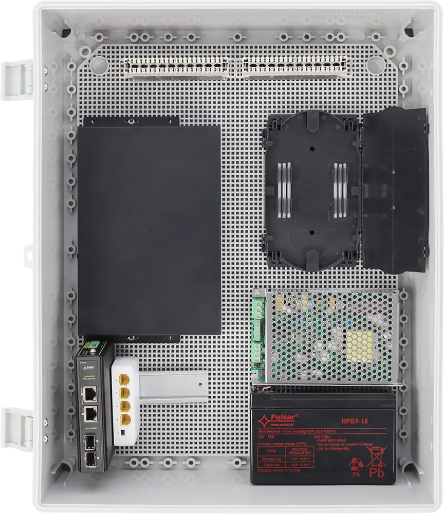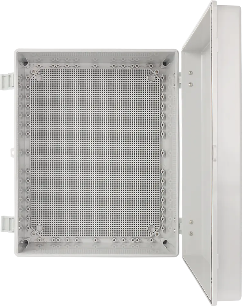 Jsou vybaveny montážní deskou se čtvercovou perforací pro snadnou instalaci zařízení a flexibilní uspořádání komponent uvnitř skříně.