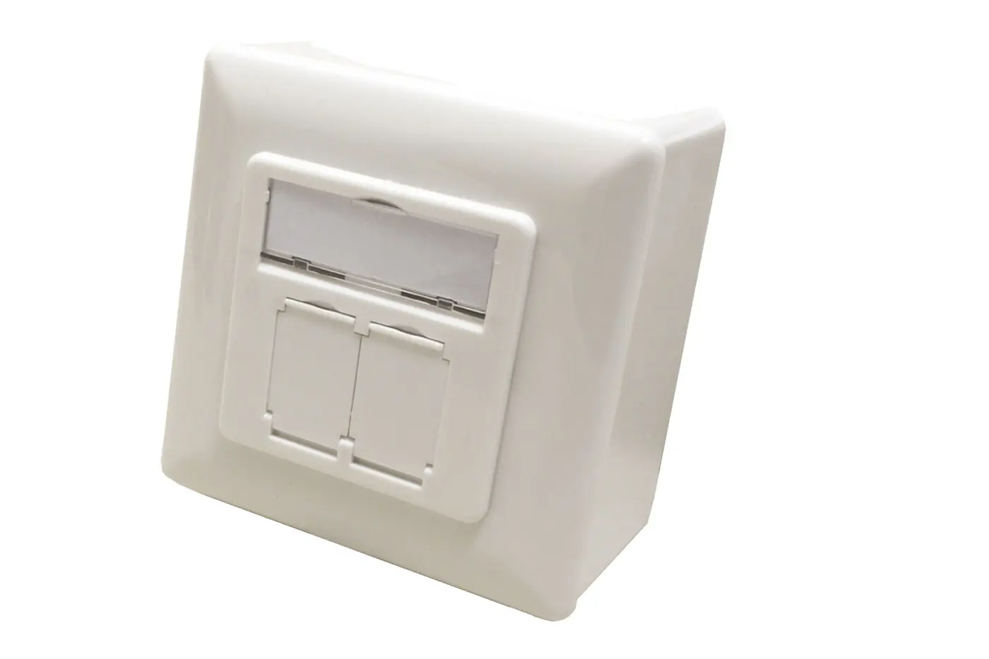 Zásuvka STP kat. 6a na omítku, 2 konektory, vertikální přívod, bílá