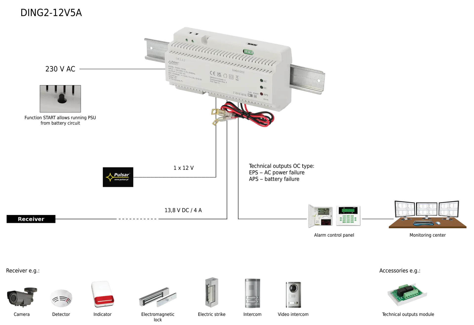 Zálohovaný napájecí zdroj pro EZS, 13,8V výstupní proud 5A, montáž na DIN lištu