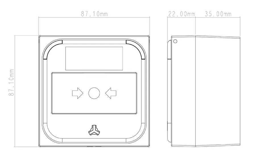 - Adresovatelný tlačítkový požární hlásič řady 3000 s integrovaným izolátorem pro zvýšení odolnosti smyčky proti zkratům.