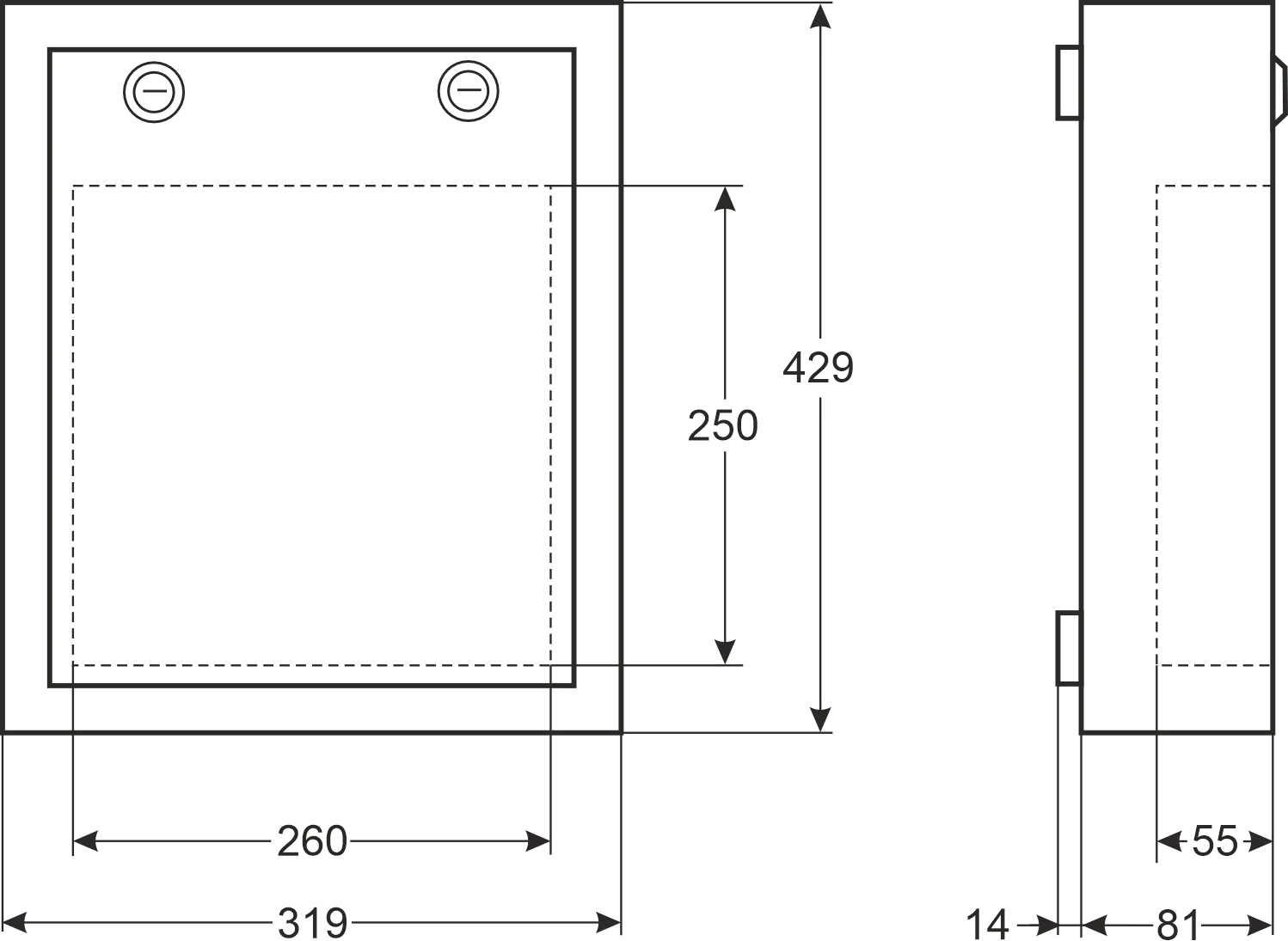 • Vnitřní rozměry pro záznamník 260 x 250 x 55 mm