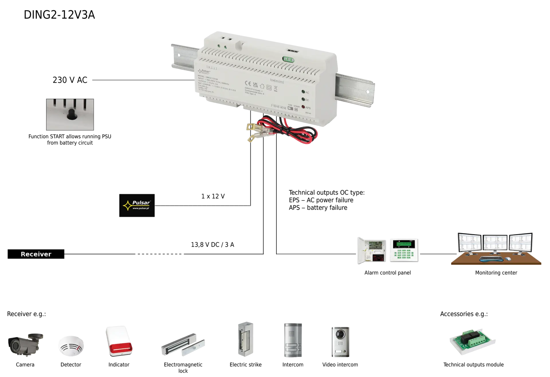 Zálohovaný napájecí zdroj pro EZS, 13,8V výstupní proud 2,5A, montáž na DIN lištu