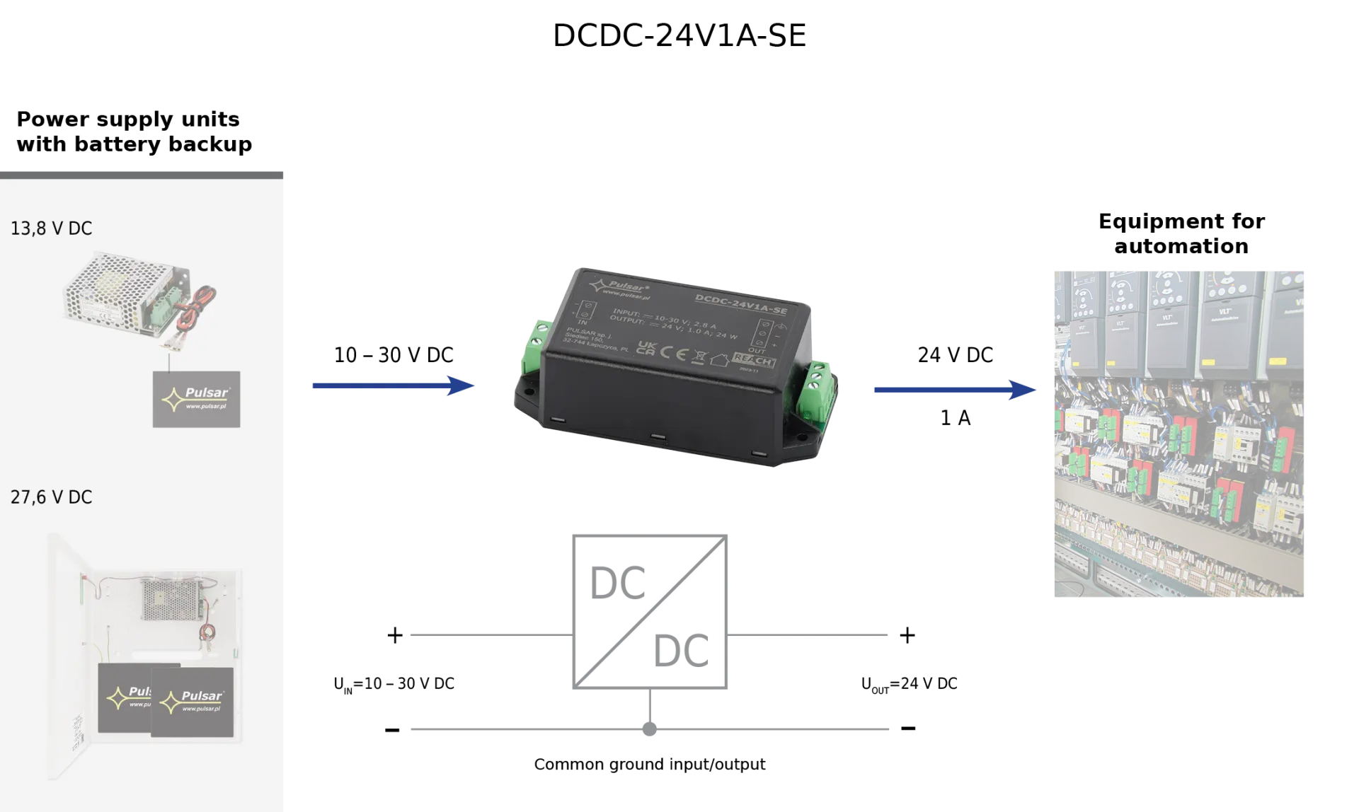 Zvyšující/ snižující stejnosměrný napěťový měnič s výstupním napětím 24V DC.