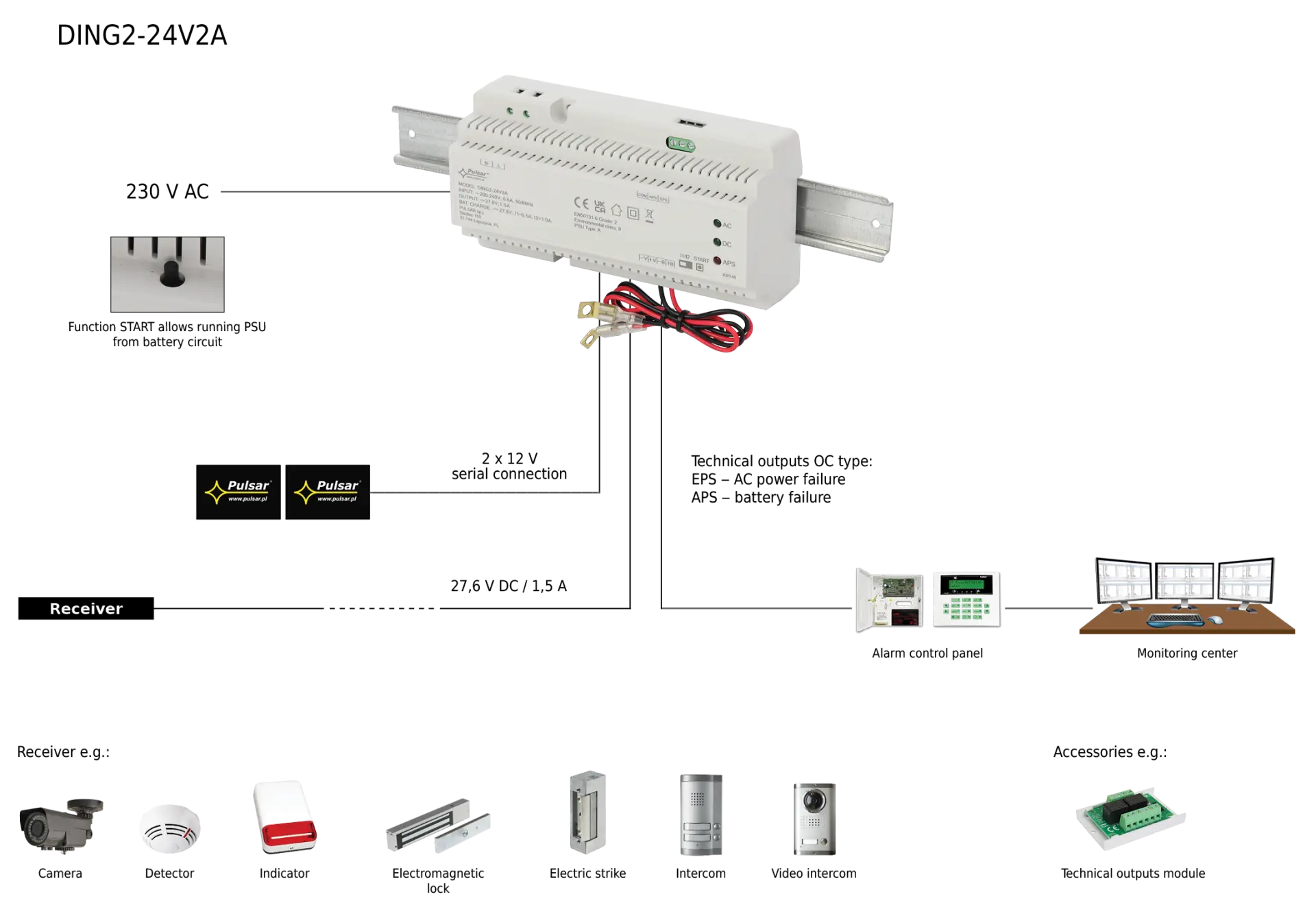 Zálohovaný napájecí zdroj pro EPS, 27,6V výstupní proud 3A, montáž na DIN lištu